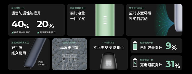 更加安全:RELX 5代電子煙機採用了多重安全保護技術,如過充保護、過放保護、短路保護等,保證使用過程中的安全性和穩定性。