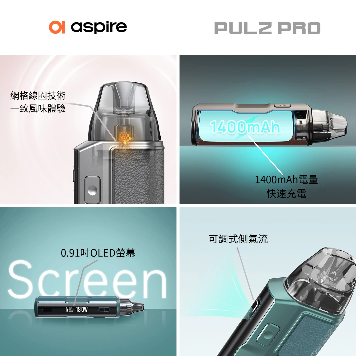- 商品名稱: Aspire Pulz Pro 1400mAh 通用Minican系列
