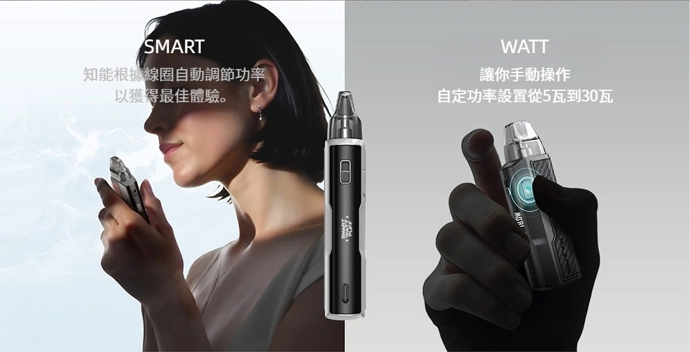 智慧模式:功率根據安裝的煙彈自動調整,非常適合初學者。