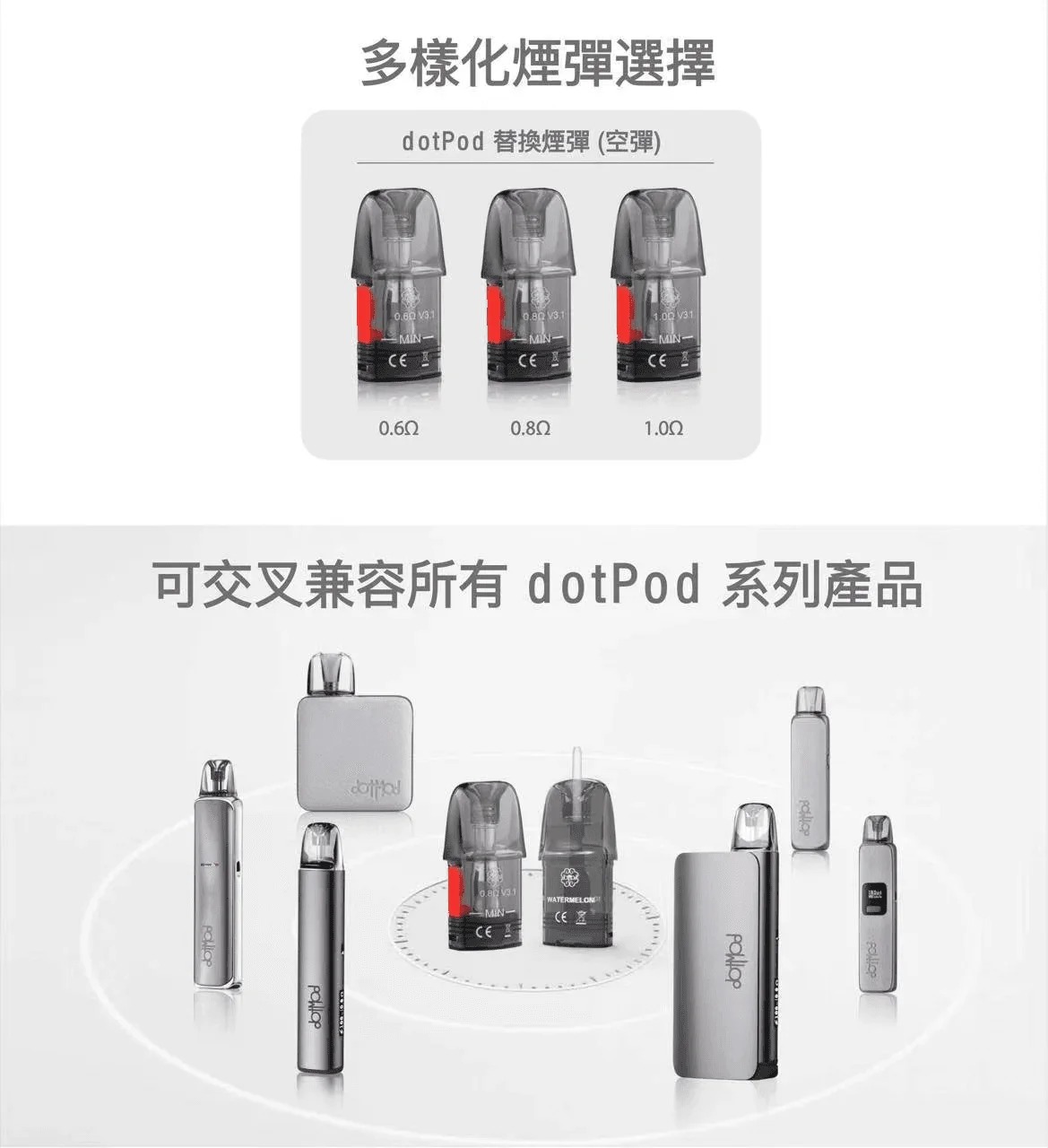 兼容實用,品質有保障:專屬兼容 Dotmod Dotpod 系列煙彈,確保原廠純正風味與最佳性能表現,使用體驗連貫且可靠。