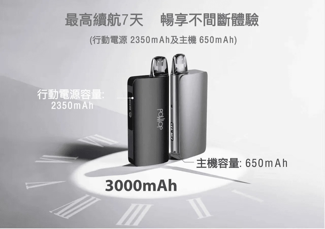 主機內建 650mAh 可充電電池,搭配 2350mAh可拆卸式行動電源,