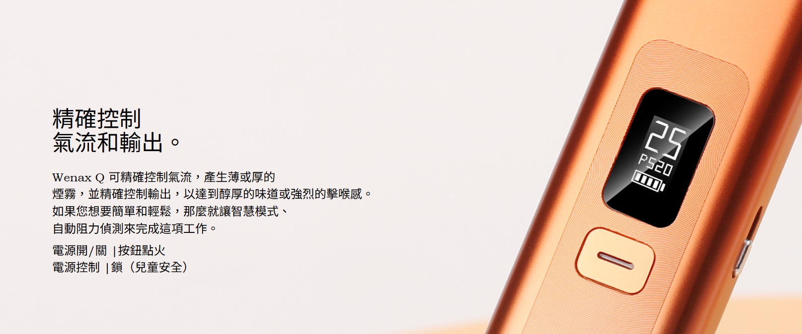 氣流和輸出Wenax Q 可精確控制氣流,以產生濃與淡的煙霧