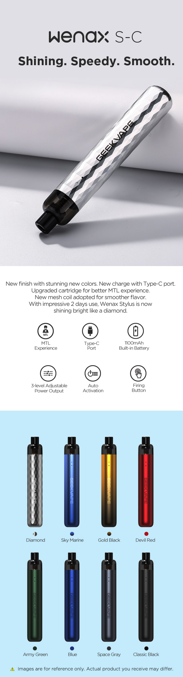 GeekVape Wenax SC 套件具有3級可調輸出、
