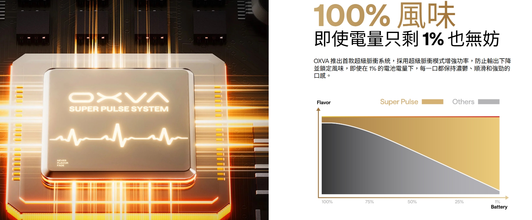 更能確保即使電量僅剩 1%,仍能享受 100% 濃鬱口感與絕佳風味,避免風味逐漸減弱的問題。