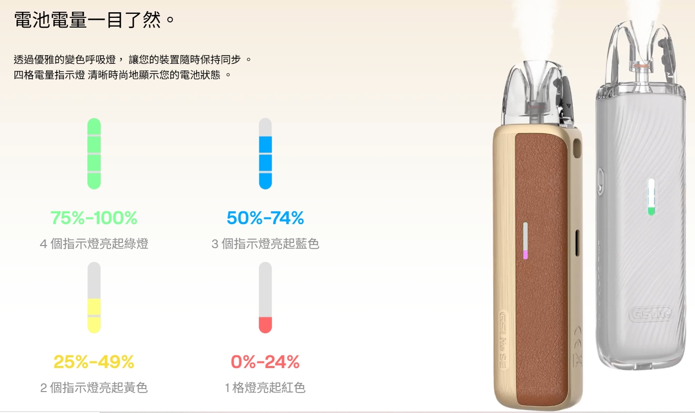 每款機型都各具特色。 G5 Lite 和 G5 Lite SE 配備時尚的四格漸層 LED 電量指示燈。