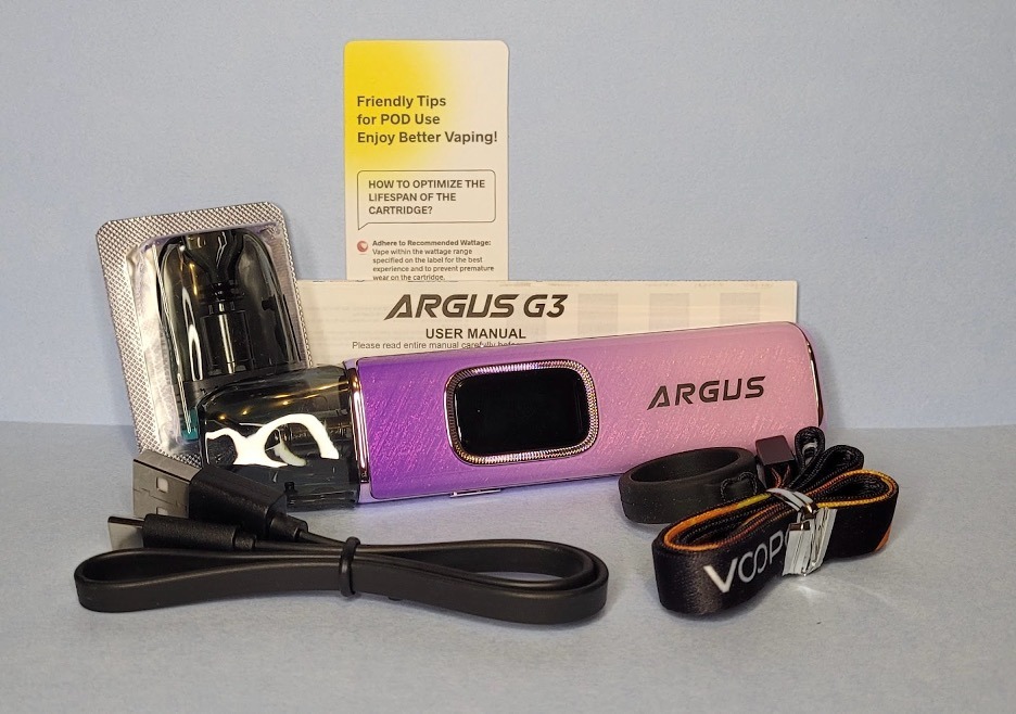 包裝裡面包含了 ARGUS G3主機、2 顆替換的煙彈(0.4Ω & 0.7Ω)💨、