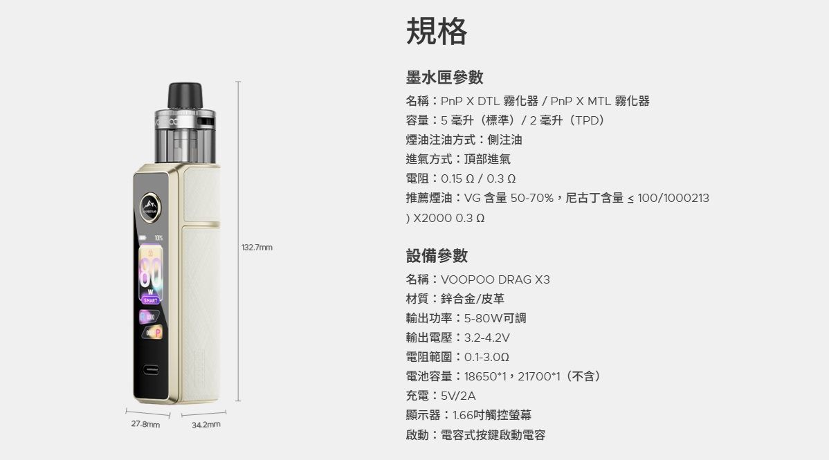 - 商品名稱: VOOPOO DRAG X3 跩哥X3 80W大煙-18650/21700單電池